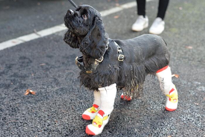 こんにちは、髙坂です。 この前犬のマラソン大会に参加してきました🐶 全力で走った結果、足は見事に泥だらけ。 そのまま車に乗せるわけにもいかず、応急処置としてばあばの服と子供の靴下を装着(笑) されるがままのイッヌでした🐾 でも、頑張って走った証の勲章みたいで、なんだか誇らしげな顔に見えました✨