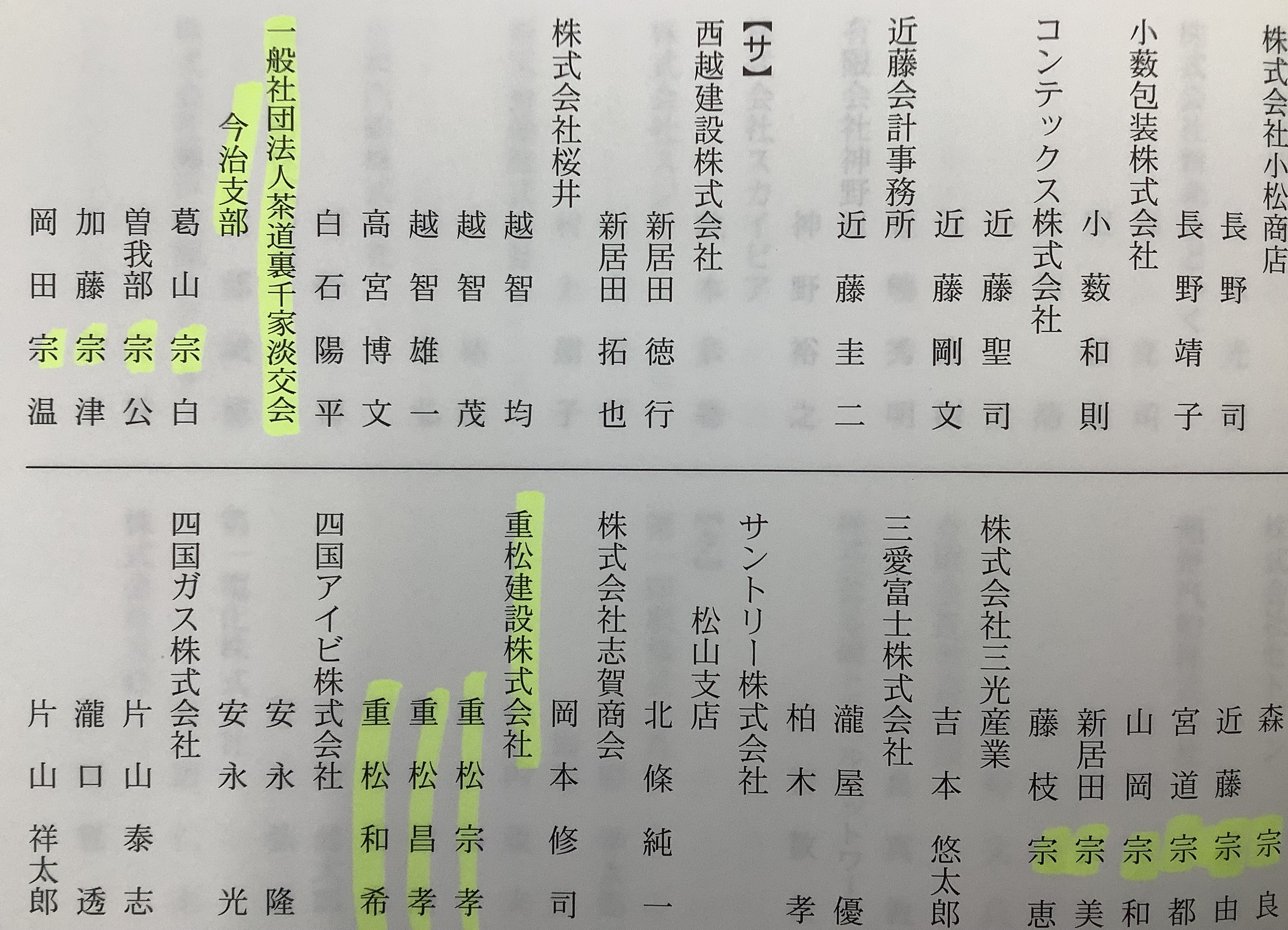 一般社団法人茶道裏千家淡交会今治支部さんの名簿があります