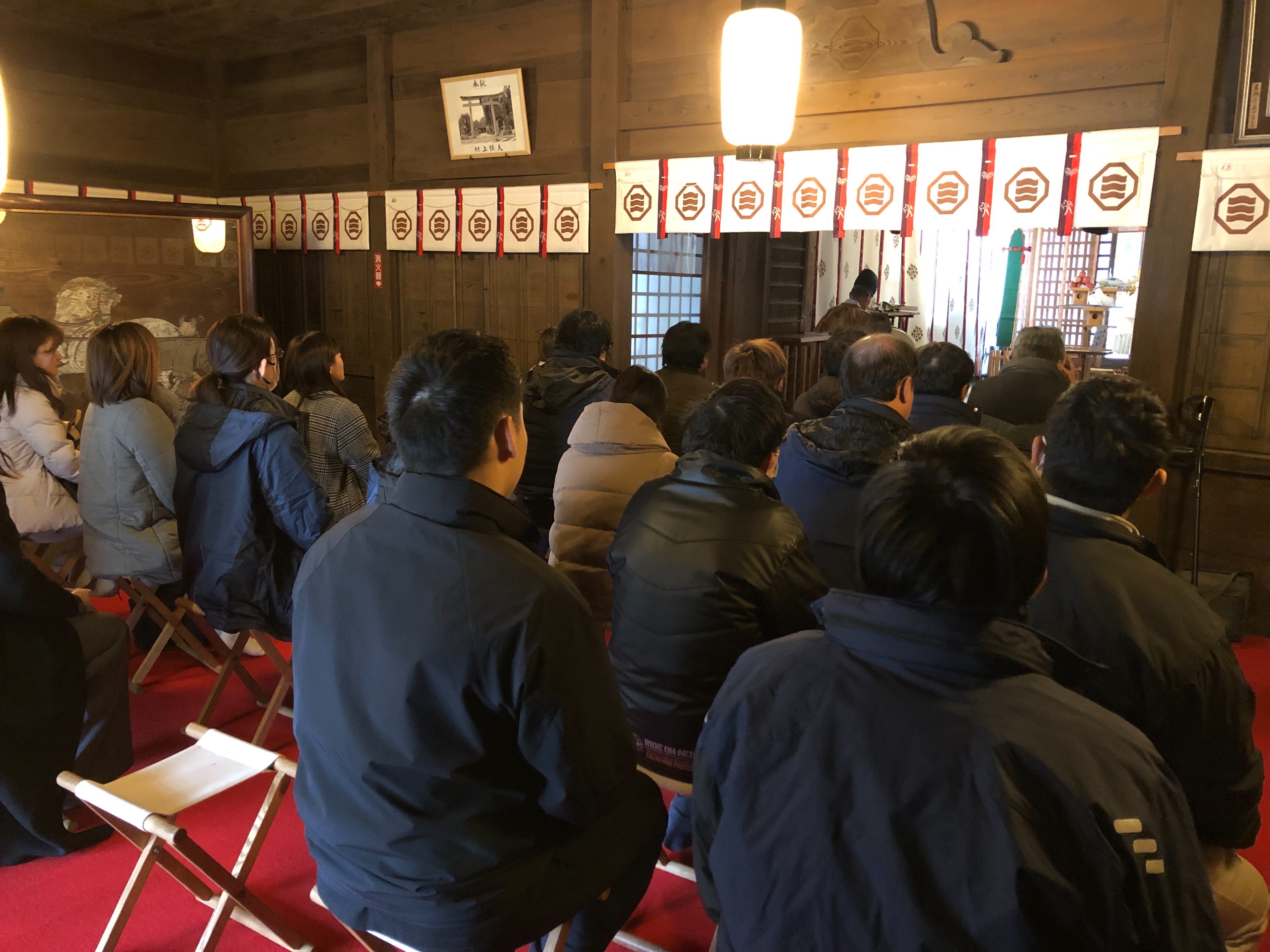 新春恒例の重松家氏神様の 別宮大山祇神社に社員全員でお詣りさせていただきました