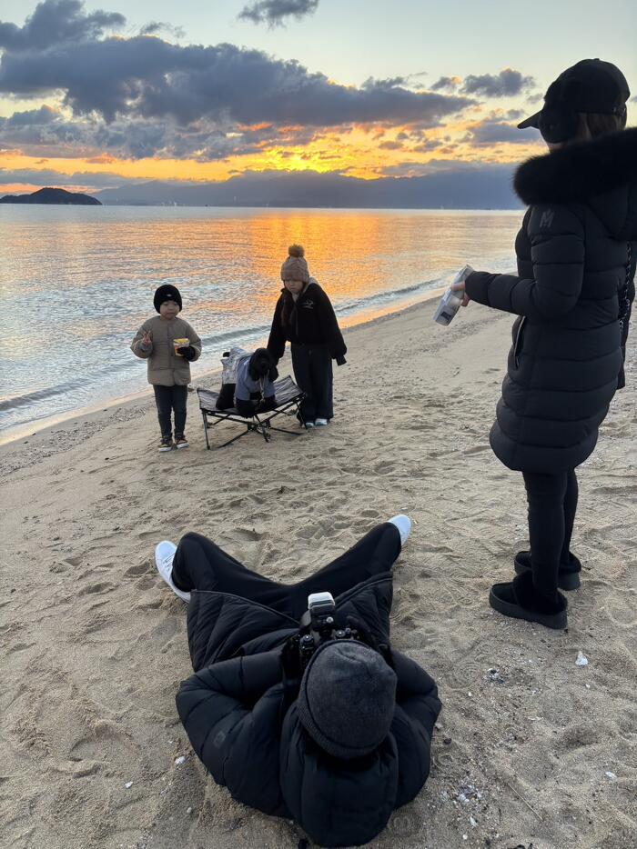 レジャーシートを広げてあっつあっつのお茶を飲みながら初日の出を待つ時間は優雅でした(笑)