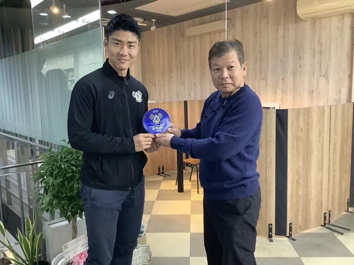 FC今治の久我幸生さんから、10年間の応援ありがとうございますと 記念品をいただきました ありがとうございます!