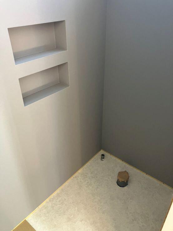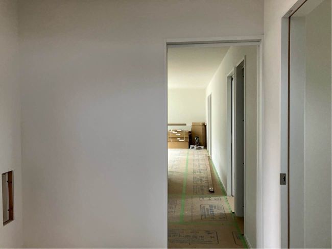クロスの次はトイレや洗面台などの設備を設置して、タイル工事も行う予定です。