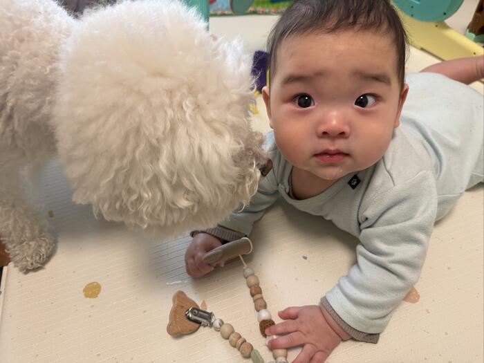 犬好き社長の孫は、 いつもトイプードルのゴン太と桜と散歩してます
