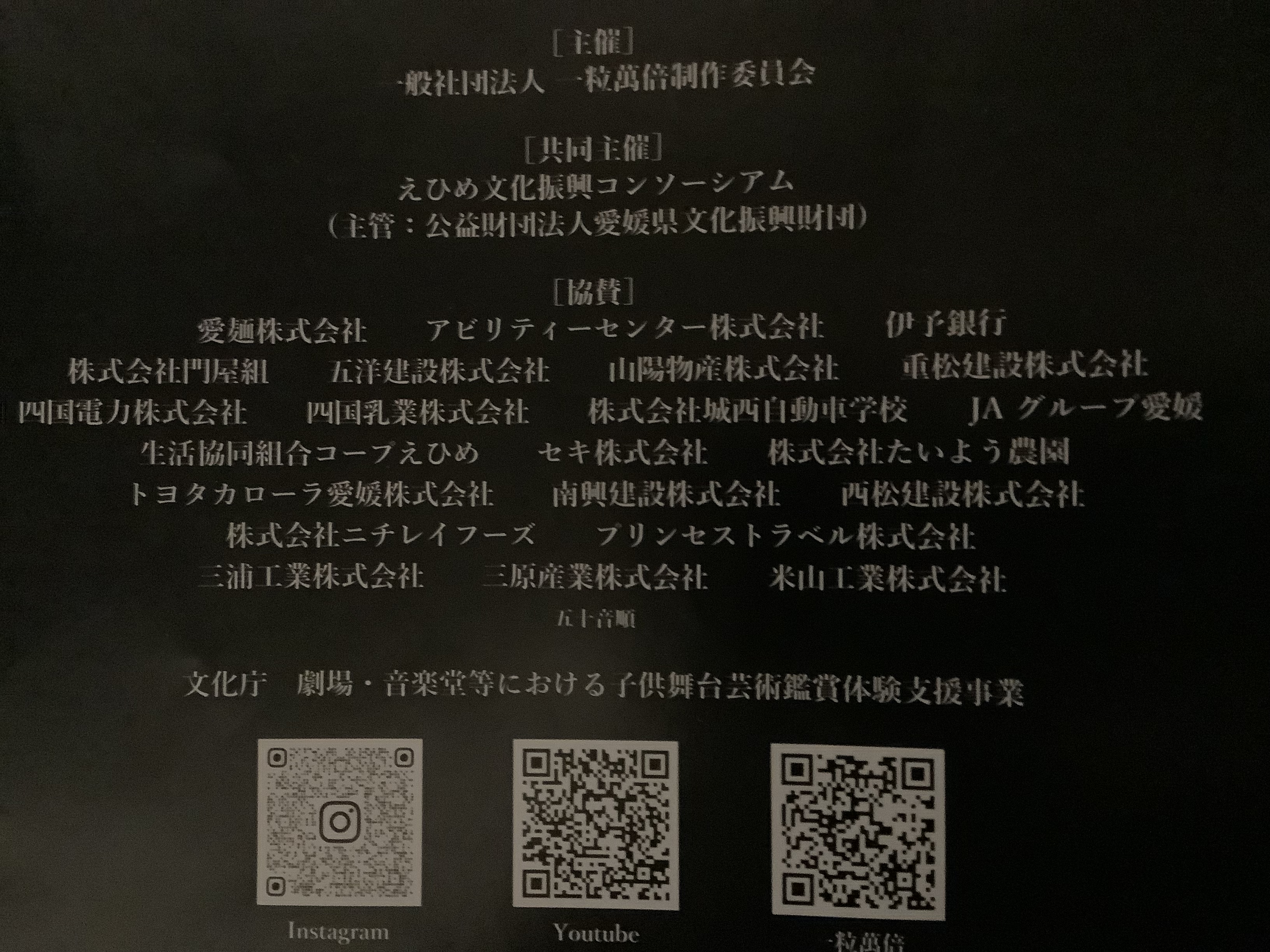 一粒萬倍を愛媛県県民文化会館で観ました 4回目です 同じ流れなのですが、演者がその都度違います