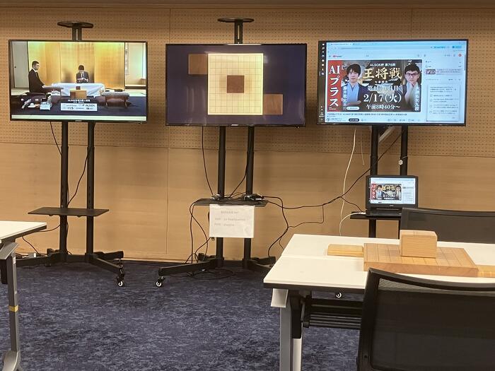 控室にて、初手立会まで待機して、 8時40分に対局室へ