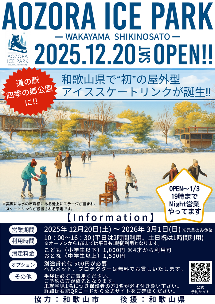 道の駅四季の郷公園に2025年12月20日、 和歌山県で初の屋外型アイススケートリンクが誕生しました!