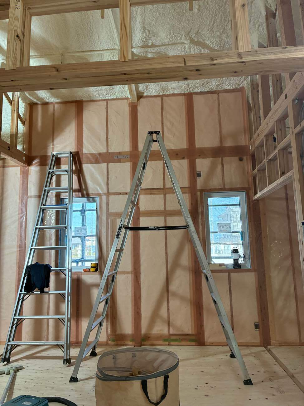 1月に建前したお家の吹付断熱したり