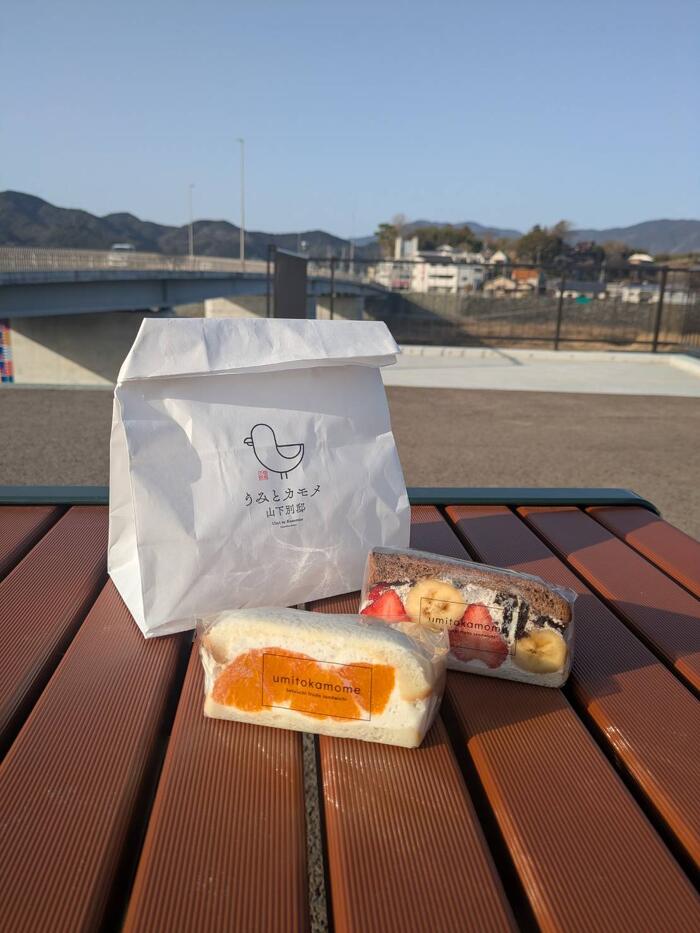 肱川眺めながら、ちょっと休憩がてらサンドイッチ食べてみたり