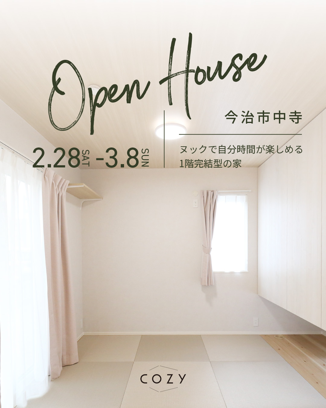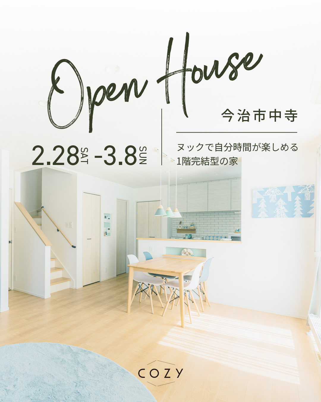 こんにちは、和希です。 今治市中寺で二階建ての見学会行っております。 今はやりのヌックがあります。 一見の価値ありです。ぜひお越しください!