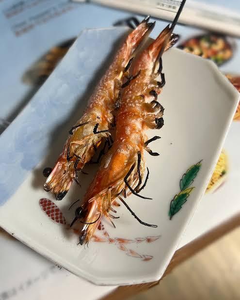 養殖されてる海老を焼いて食べさせてくれました 美味しい! 海老の殻が柔らかくて絶品でした 大変有意義な菊間訪問でした!