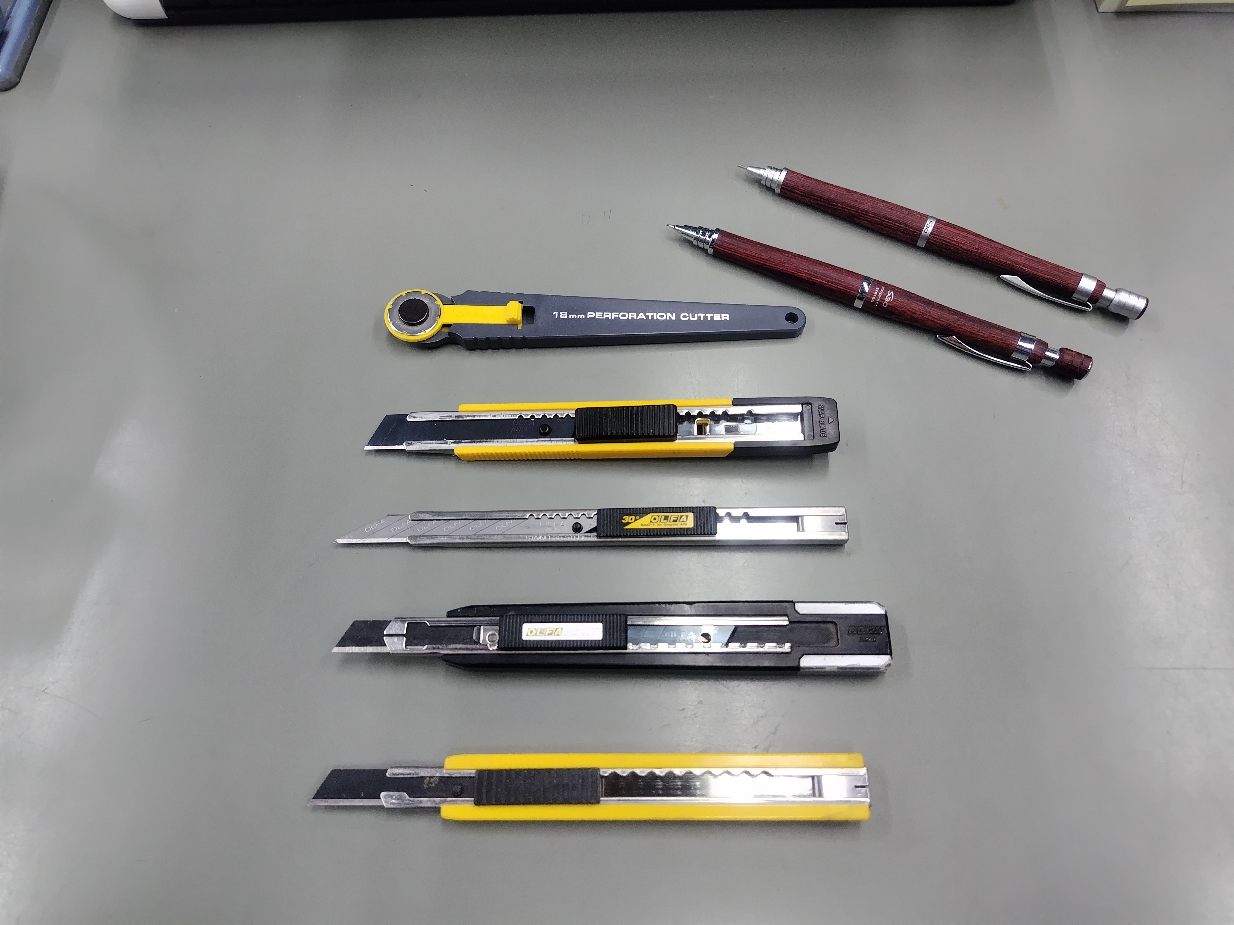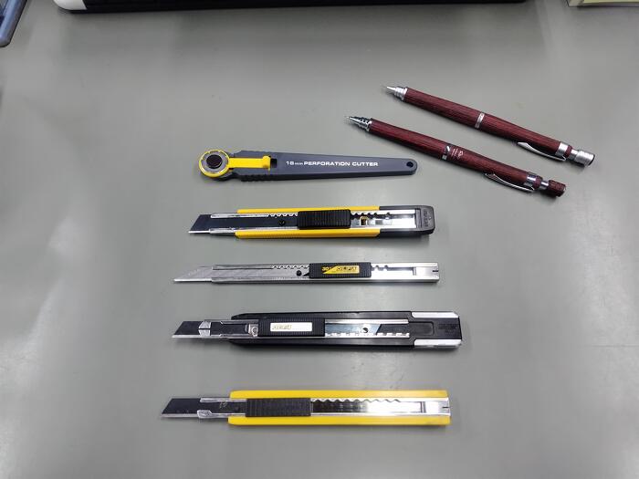 おいちゃんの机の廻りに常にいるカッターナイフ達