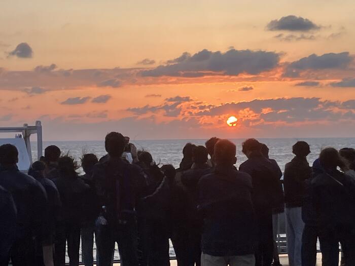 朝5時40分に船上から日の出を拝みました