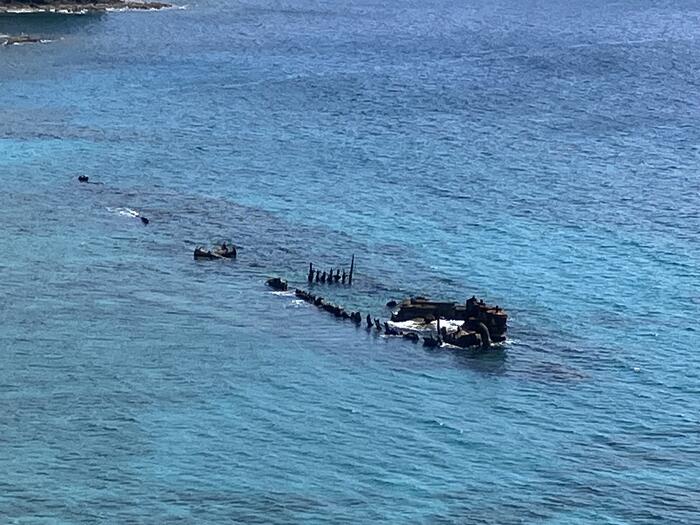戦時中に沈没した輸送船が朽ちてそのまま海に