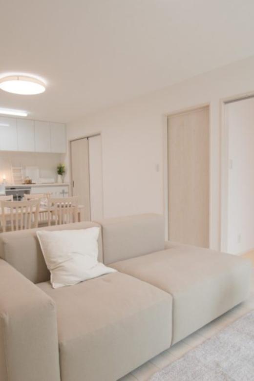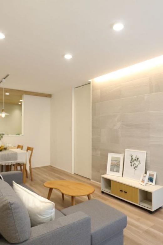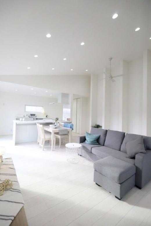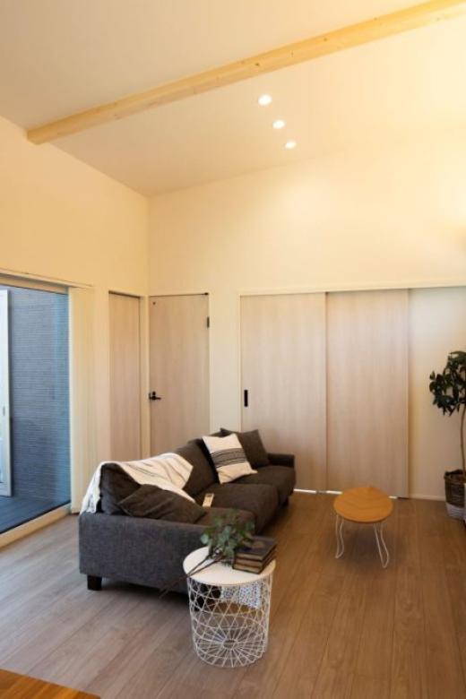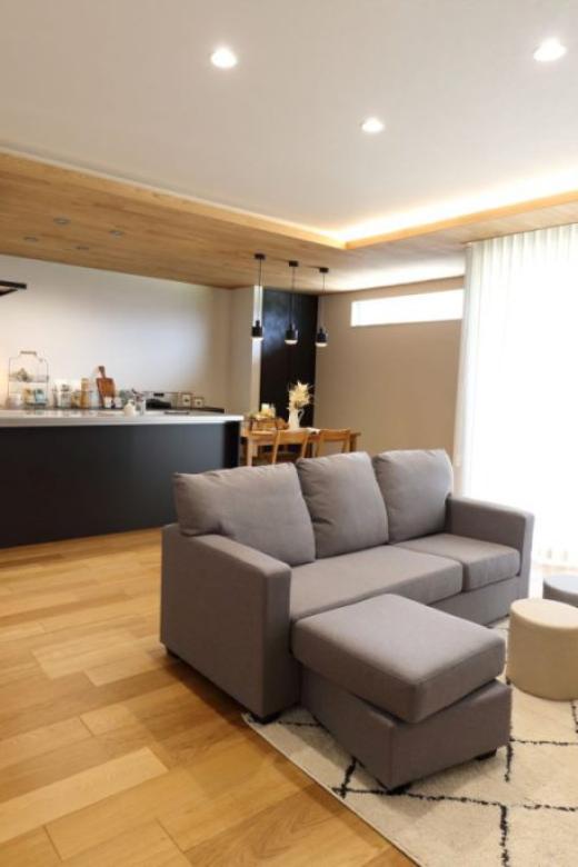 リビングに光を呼び込む、中庭のあるモノトーン平屋